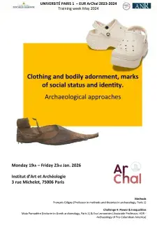 The next teaching week, " Clothing and bodily adornment, marks of social status and identity. Archaeological approached", will take place at the Institut d'Art et Archéologie - Paris, Monday 19th - Friday 23rd January 2026.